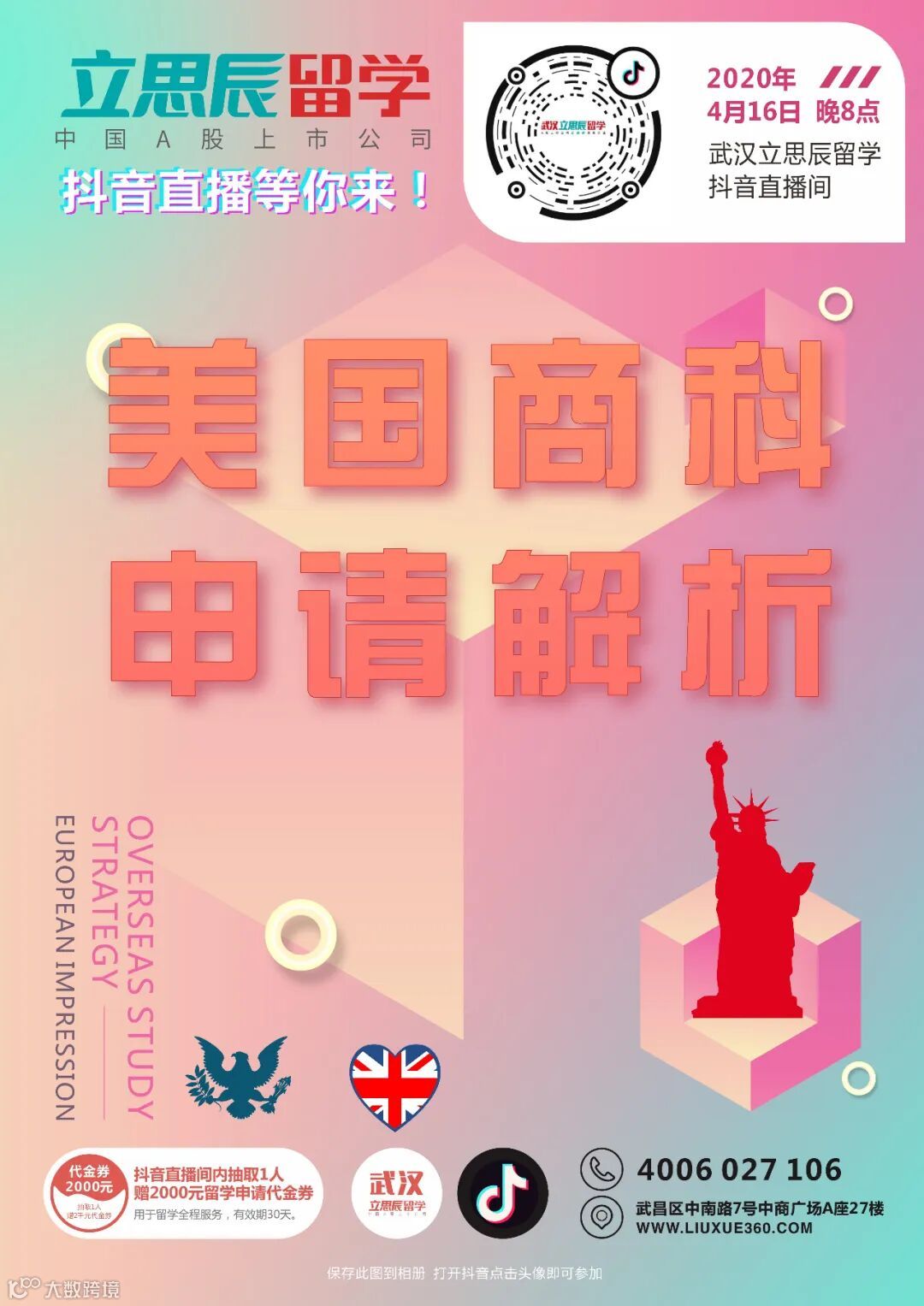 那么今晚8点,武汉立思辰留学抖音直播间,廖丽鸣老师将带你从热门院校、专业选择、申请规划等方方面面解读美国的商科~