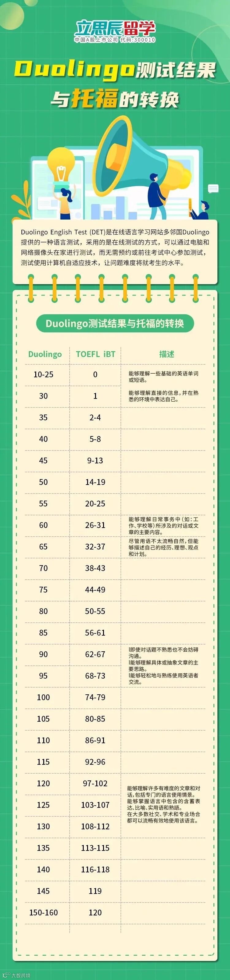 Duolingo English Test 是一项面向当今国际学生和机构的现代英语水平评估测试。测试可根据需要在线提供,您可以通过电脑和网络摄像头在家进行测试,而无需预约或前往考试中心参加测试。整个测试仅需约60分钟,并在48小时内获得认证。您可以将结果发送至无限数量的机构。