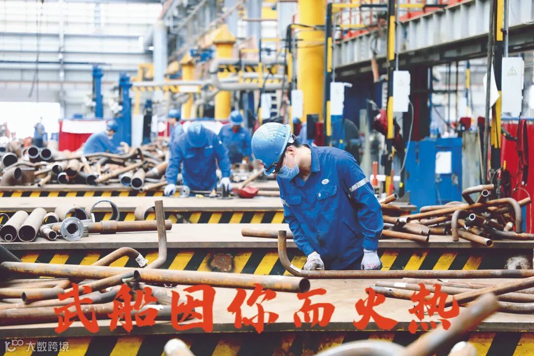 武船重工股份四联跨外场,深中通道项目施工人员正在对单元件进行火焰校正。目前,该项目单元件已进入批量生产阶段。