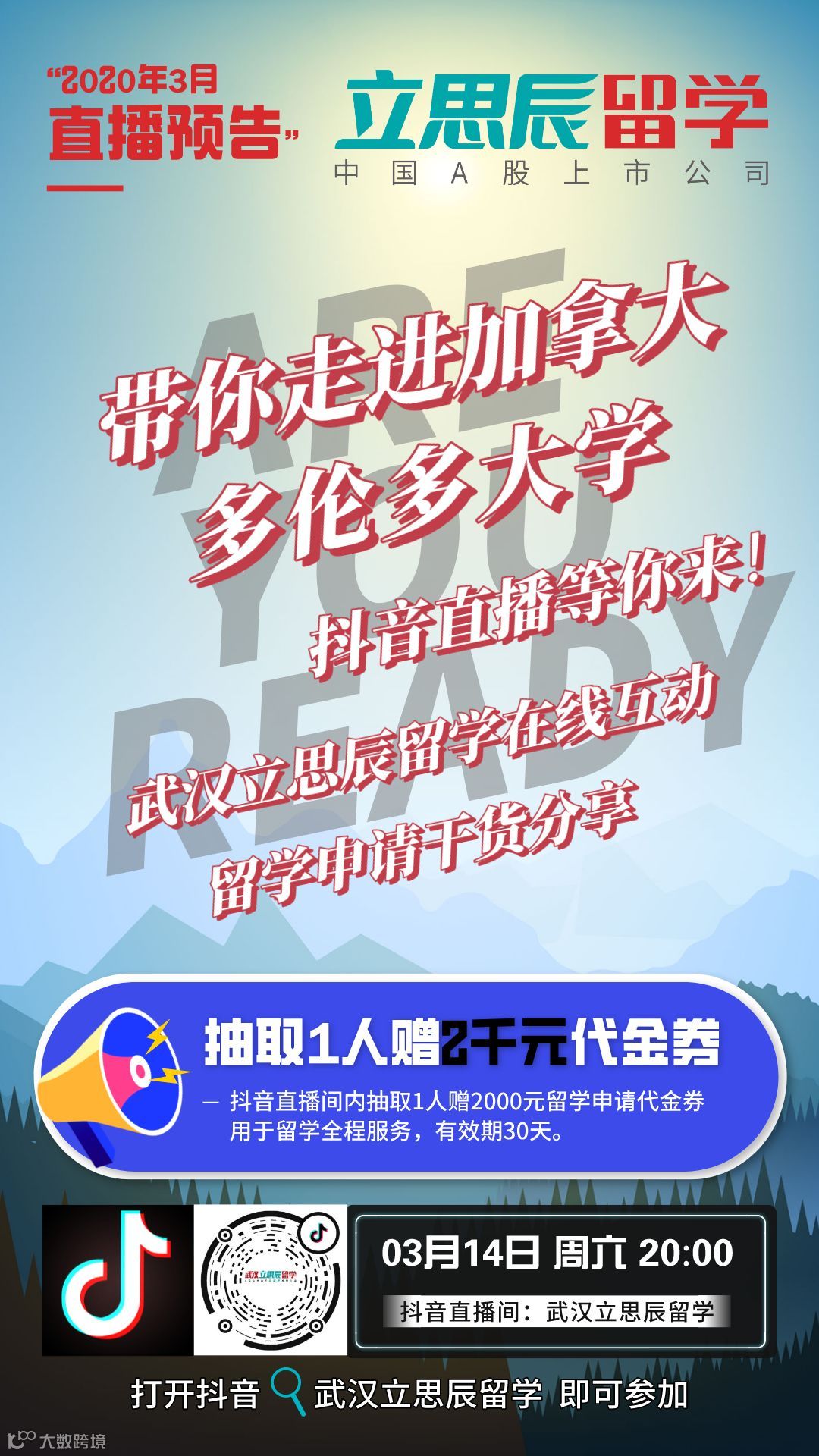 今晚8点,武汉立思辰留学抖音直播间,李晨老师带你走进多伦多大学~