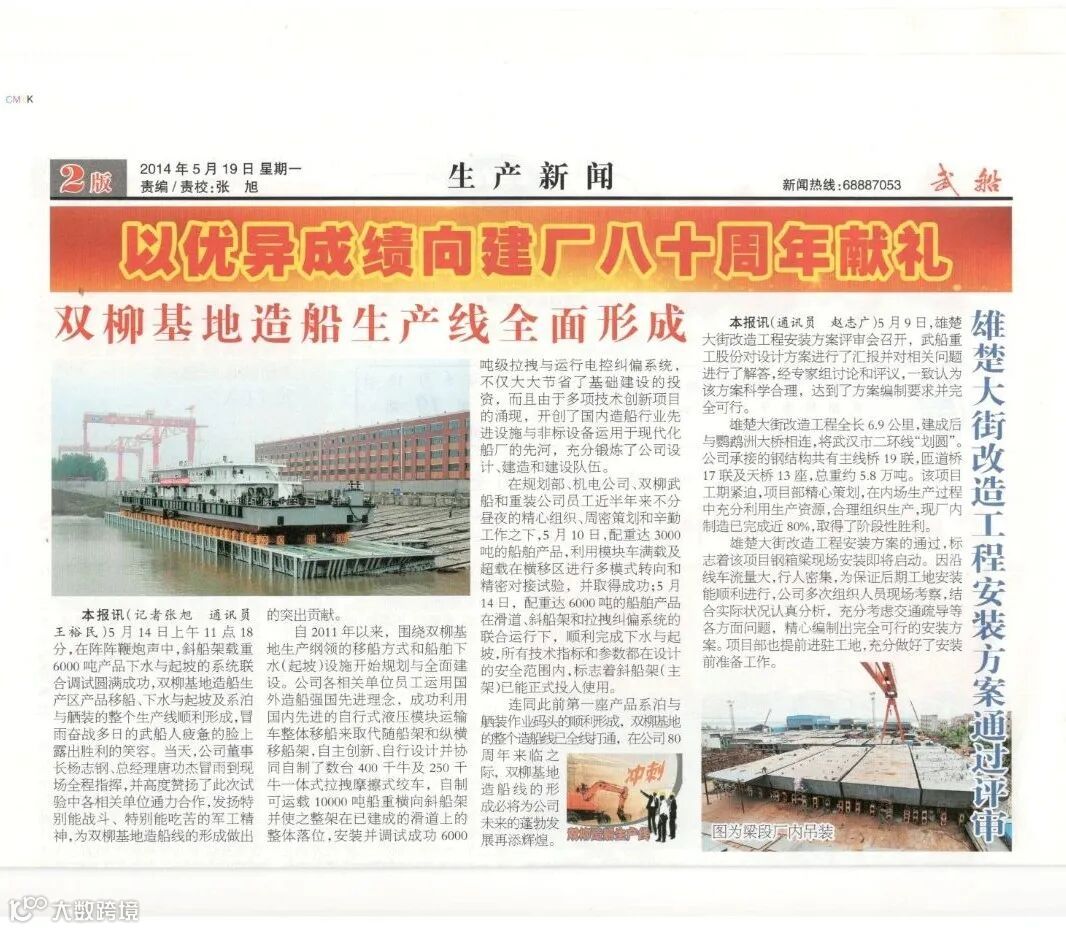 你先后建成了世界一流的桥梁板单元生产线,建成了国内先进的造船生产线,港珠澳大桥、多艘先进的船舶在你这里建成,奔向了远方。