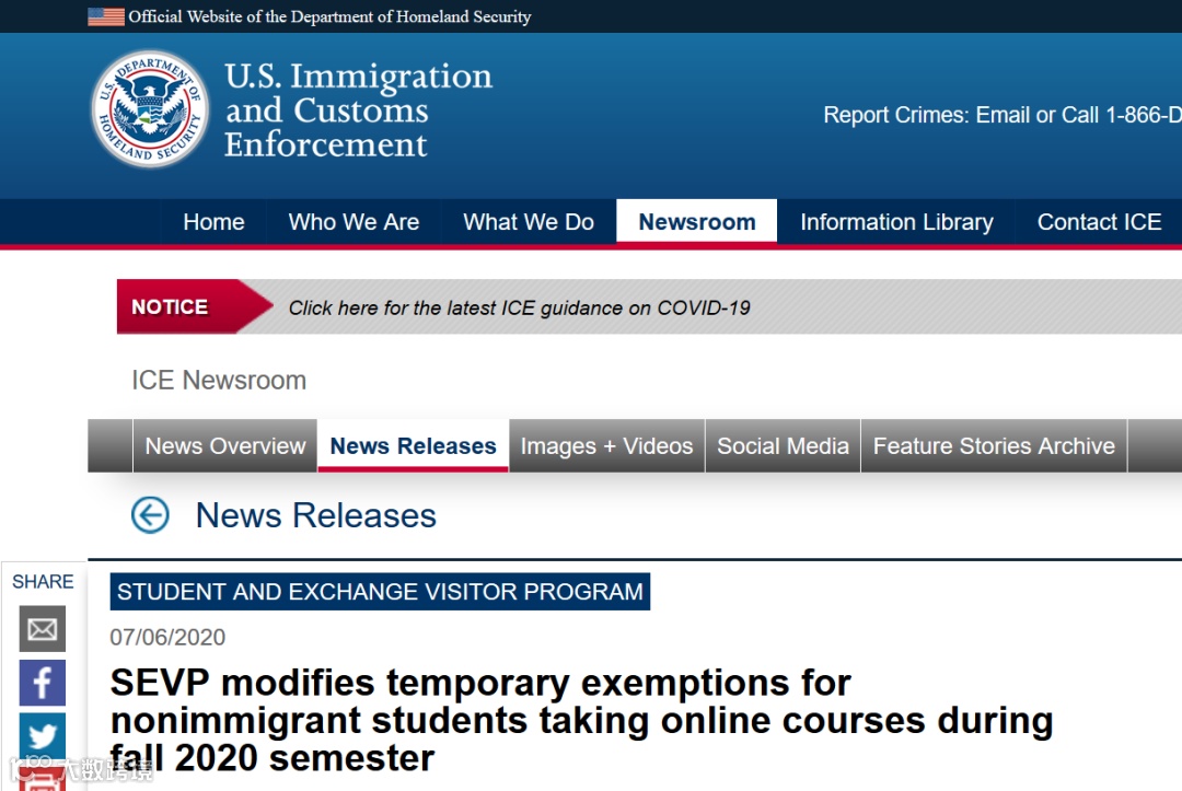 美国移民和海关执法局ICE(Immigration and Customs Enforcement)宣布:在今年秋季,国际留学生(F或者M签证持有者)需要至少上一门线下面授课程,否则将面临被驱逐出境的危险!