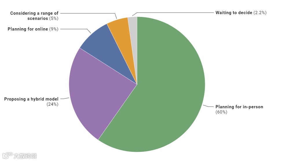 我们可以看出,有60%的高校表示计划秋季正常开学并恢复面对面授课;仅有9%的高校计划采取全部网课的授课模式。