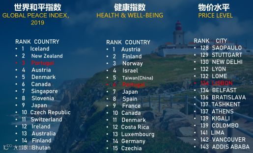 在健康指数排名中,葡萄牙排在第六位,当地居民的生活质量比较高,生活方式也很健康。物价低也是葡萄牙一个很大的特点,首都里斯本作为西欧比较有名的一个城市,物价也是出了名儿的低,所以当地生活压力很小。