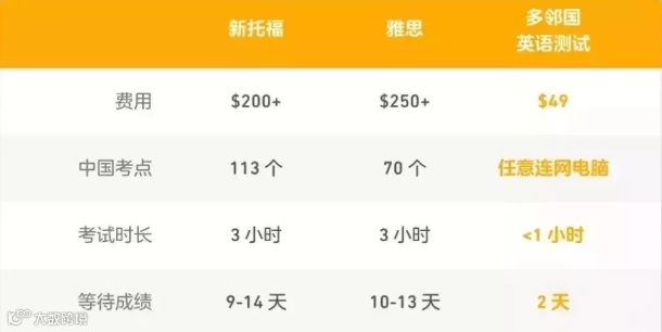 (图为相对于雅思与托福,多邻国考试的优势)