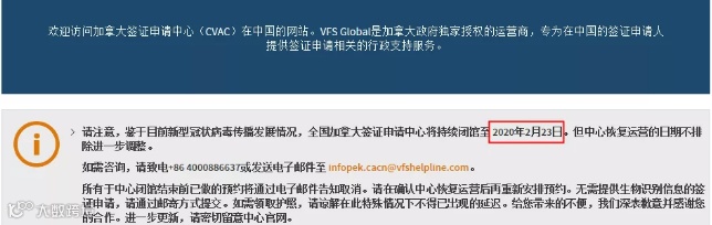 加拿大签证中心通知