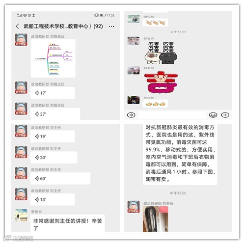 同时,为了使教职工牢记防疫知识并为复学做充分准备,学校还组织亲身经历过战疫工作的教师(原武船职工医院医护人员)为全体教职工进行防疫知识线上培训会。通过语音直播和图片展示,重点讲解并指导大家学习从出门、乘电梯、上班途中、工作期间、就餐及回家后的防疫注意事项等。广大教职工纷纷表示虽然平日学习过防疫知识,但听到战疫工作者身临其境的分享、培训后仍感到受益匪浅。