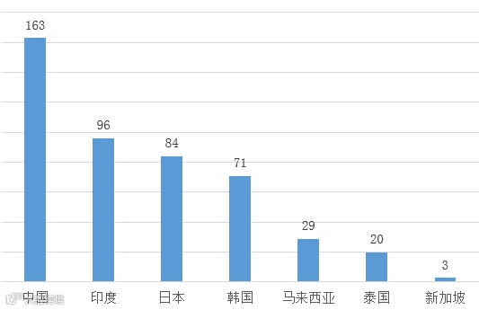 进入本次榜单的院校总共有550所,较去年增加了51所。在收录的500多所院校中,中国凭借163所大学成为了上榜数量最多的国家,较去年增加6所。日本(84所),韩国(71所,较去年增加14所)、马来西亚(29所)、泰国(20所)、新加坡(3所)。