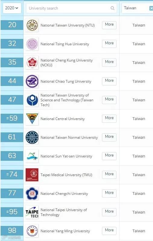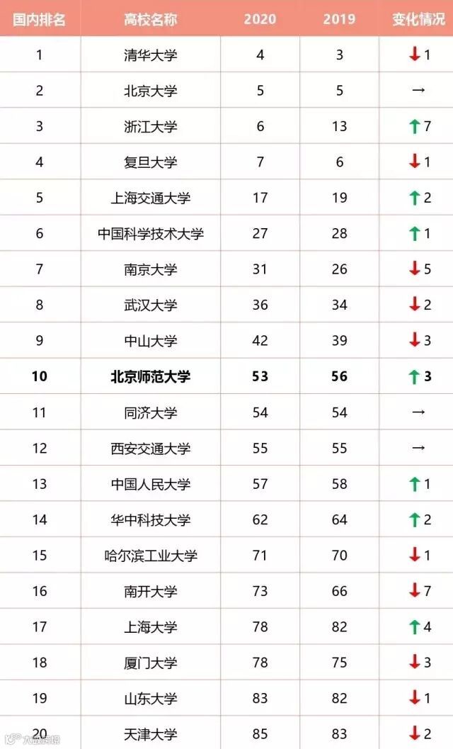 说完了评价标准,下面让我们具体来看看2020年QS亚洲大学排名有何变化: