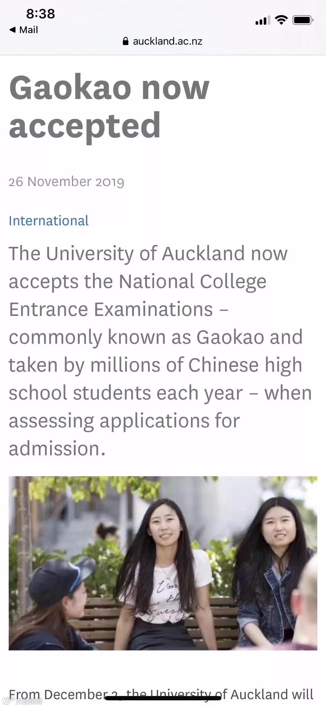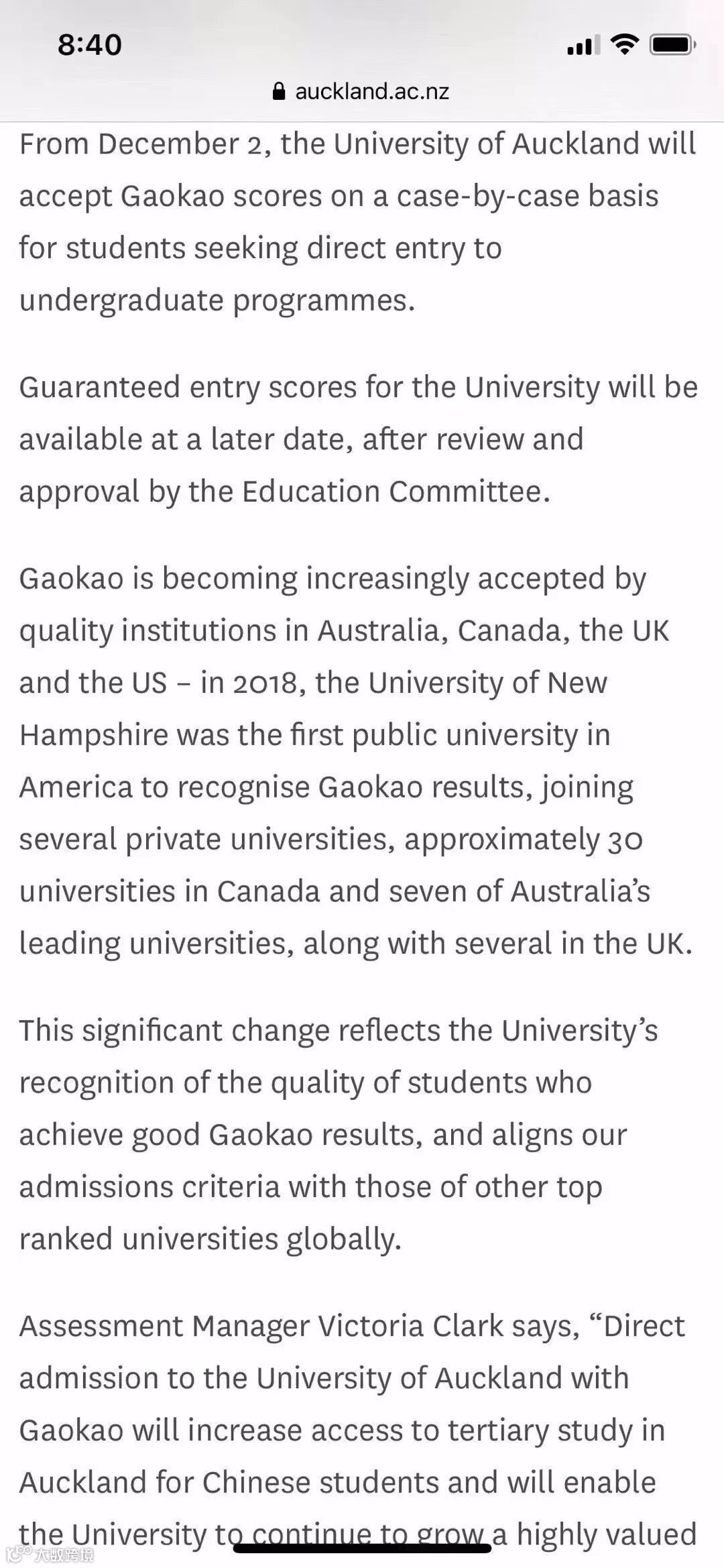 这是个历史性时刻,新西兰八大名校全部接受中国高考成绩申请了。