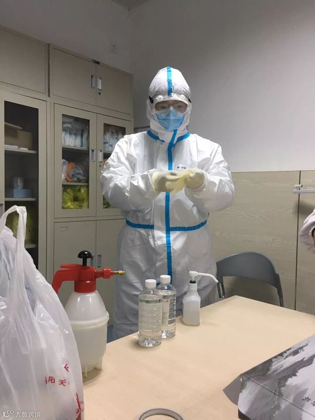 ↑↑图为2月15日晚穿着防护服在隔离病区工作的医护职工↑↑