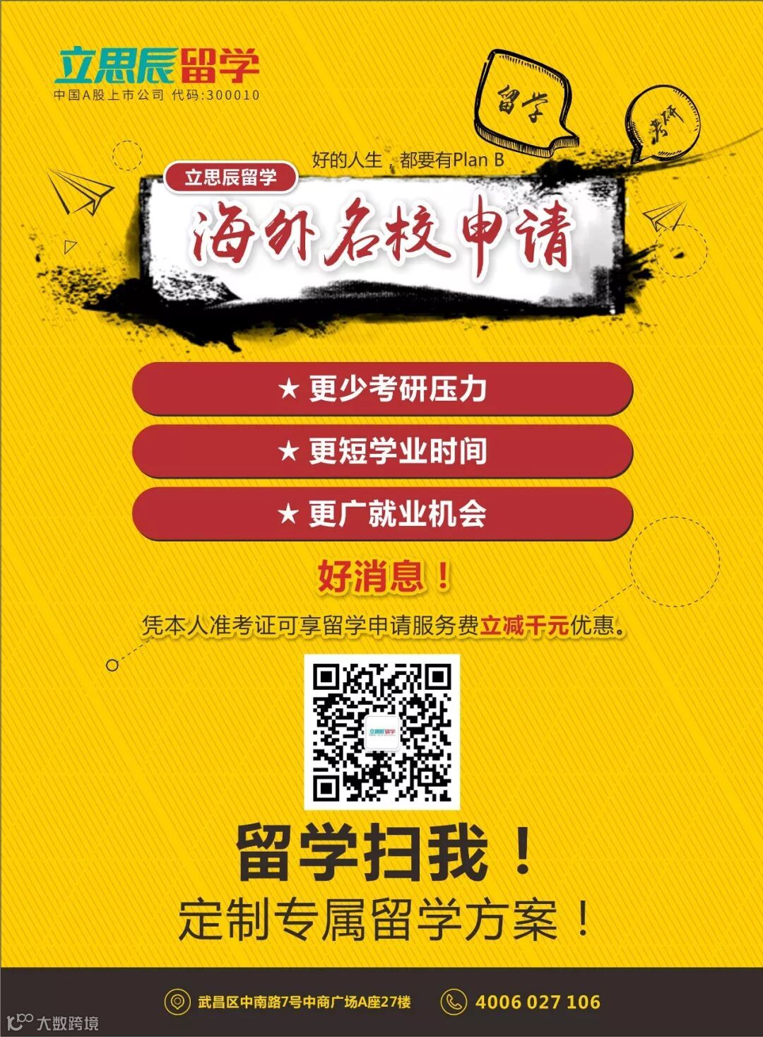 凭本人准考证可享留学申请服务立减千元优惠。