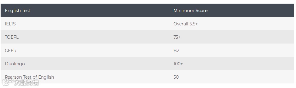 学生必须有较强的英语水平才有资格参加该项目。最低英语要求见下图: