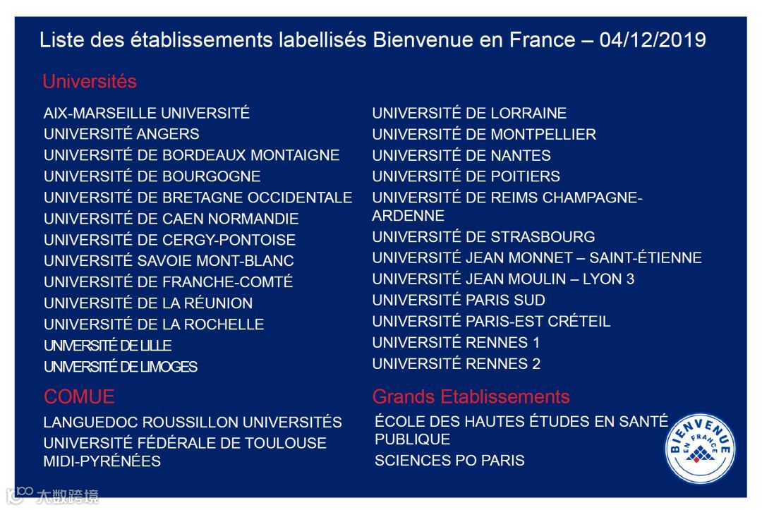 “Bienvenue en France(法国欢迎你)”——法国高等院校国际学生接待质量的认证标志