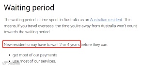 实际上,许多福利在申请之前都有一个等待期,并且等待期通常从获得PR(或者其他特殊临时居住签)后的那天开始计算,而且只有人在澳洲的天数才算哦!一般等待期为2-4年。