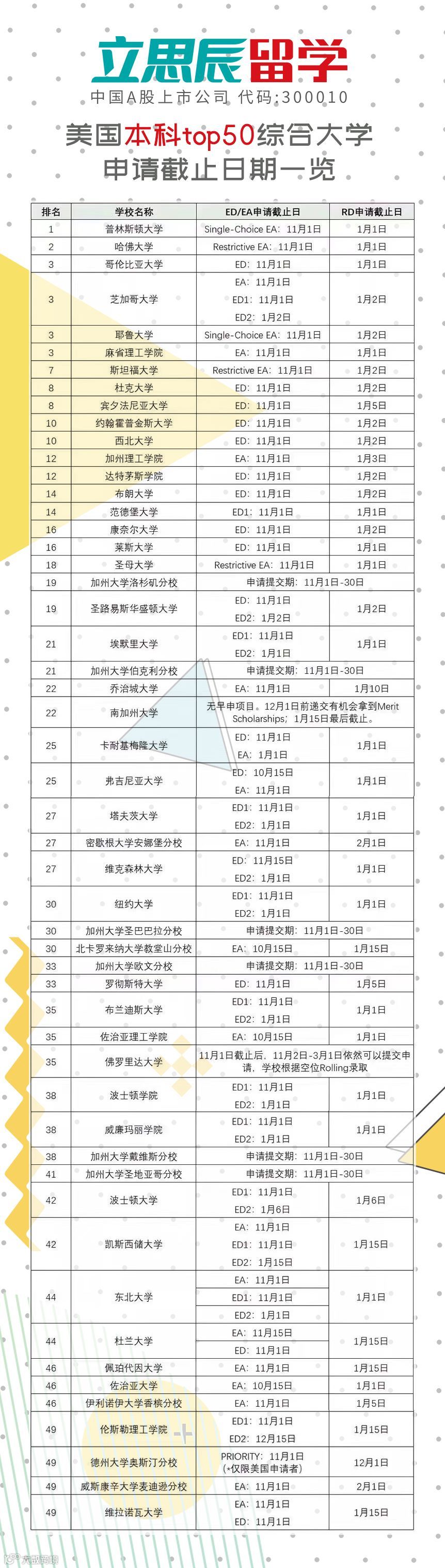 因为ED1和 EA的截止时间多在11月1号,要求同学们的应该在此之前考出标化成绩,比较保险的是10月之前的SAT1或ACT,但是如果实在不行,还有ED2的机会,ED2的截止时间大多在1月1号。