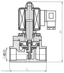 :它是一种直动和先导式相结合的原理,当入口与出口没有压差时,通电后,电磁力直接把先导小阀和主阀关闭件依次向上提起,阀门打开。当入口与出口达到启动压差时,通电后,电磁力先导小阀,主阀下腔压力上升,上腔压力下降,从而利用压差把主阀向上推开;断电时,先导阀利用弹簧力或介质压力推动关闭件,向下移动,使阀门关闭。