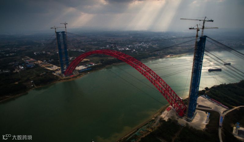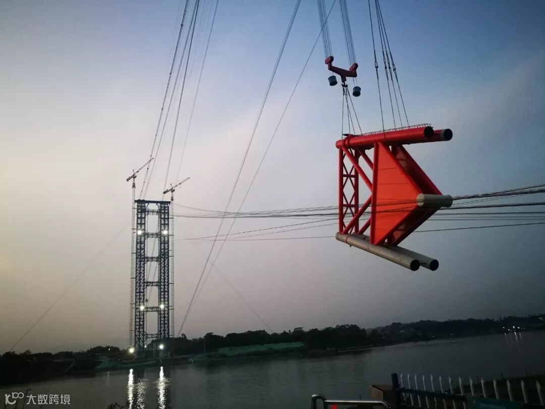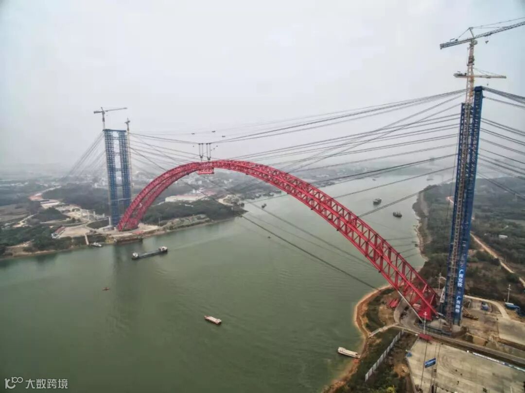 平南三桥首个拱肋节段从2019年10月12日开始吊装,到最后一个拱肋节段完成吊装,历时整整90天。平南三桥主拱肋共计44节,单侧22节,主拱肋主弦管由1960个直径1.4米的筒节焊接而成。合龙段拱肋长31米、高9米、重163吨。