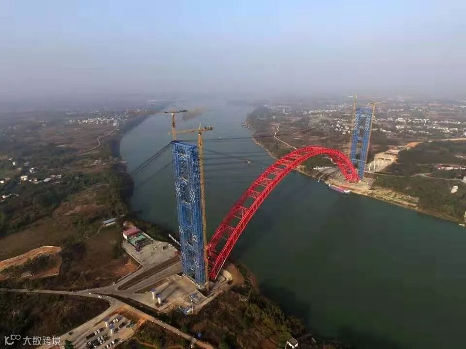 平南三桥是目前世界最大跨径钢管混凝土拱桥,主跨575米(计算跨径560米),总用钢量约1.5万吨(主拱9000吨),大桥主拱肋的精准合龙为国内大跨径拱桥的进一步发展提供了技术支撑。