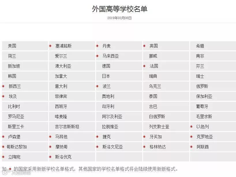 注②:这个列表仅代表中国教育部承认其正规学历,并不代表教育部对这些学校的办学质量优劣和学术声誉的评价。