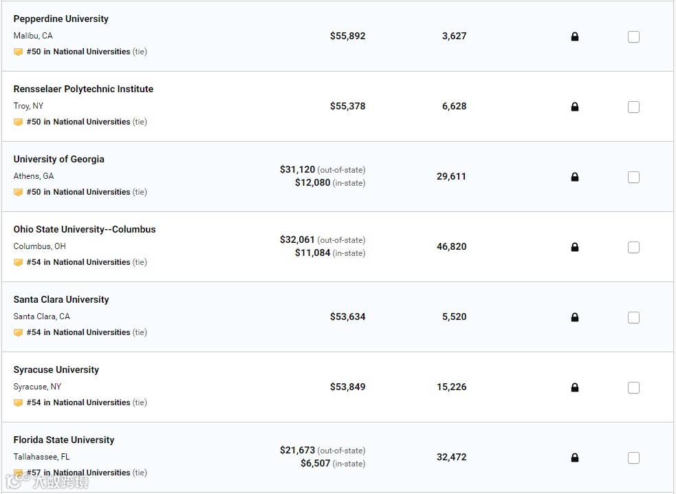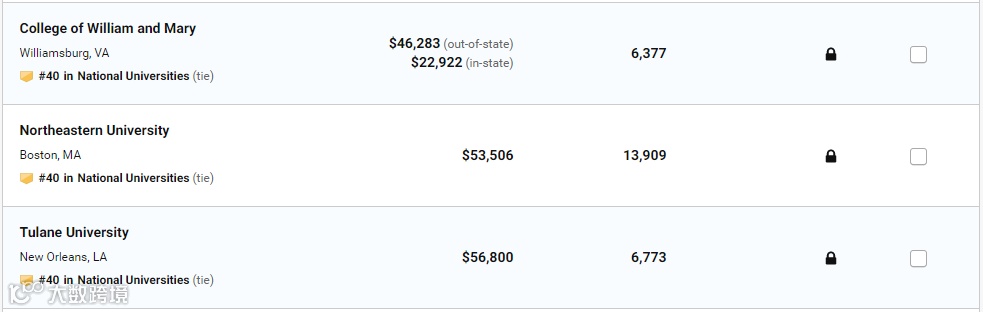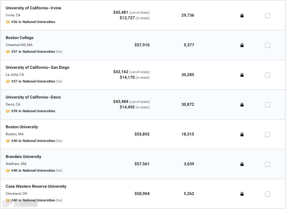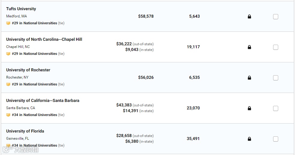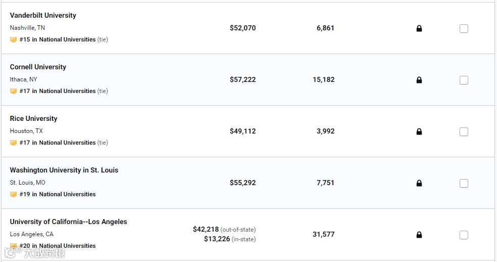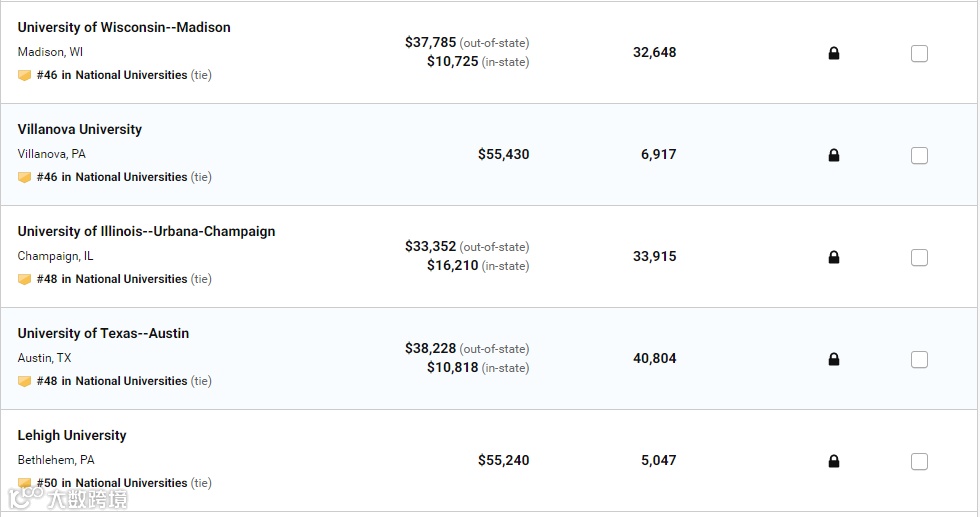 U.S. News的排名,根据16项学术质量指标对高校进行评估。它们可以让你根据一些被广泛接受的优秀指标,如第一年的学生保留率、毕业率和师资力量,对美国大学的相对质量进行比较。