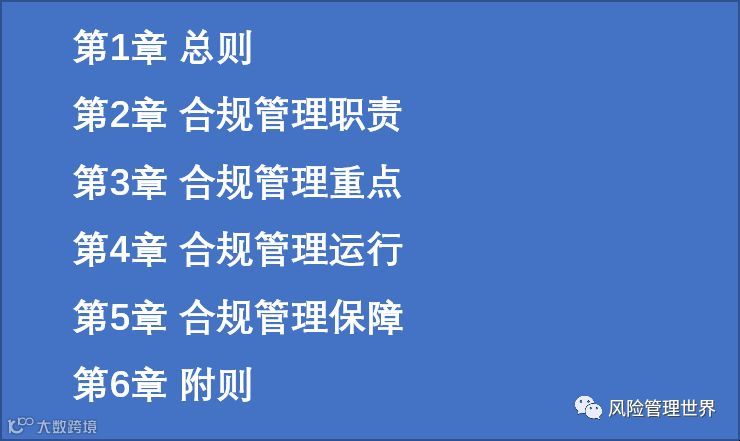 这就是合规所有涉及的各方面内容,我对其中的大部分描述都表示认同,只是对其中关于规章制度的内容持保留意见。按照这样的描述,对企业规章制度的遵循性也属于合规管理的范畴。