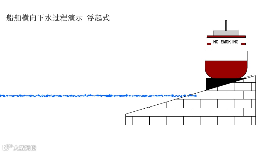 下水过程:按船宽方向滑移,一舷首先入水。这种方式分为两种,