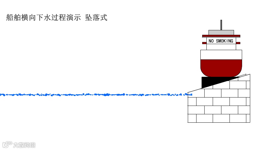 坠落式,下水时船舶连同下水架、滑板一起堕入水中: