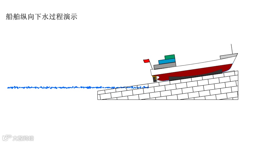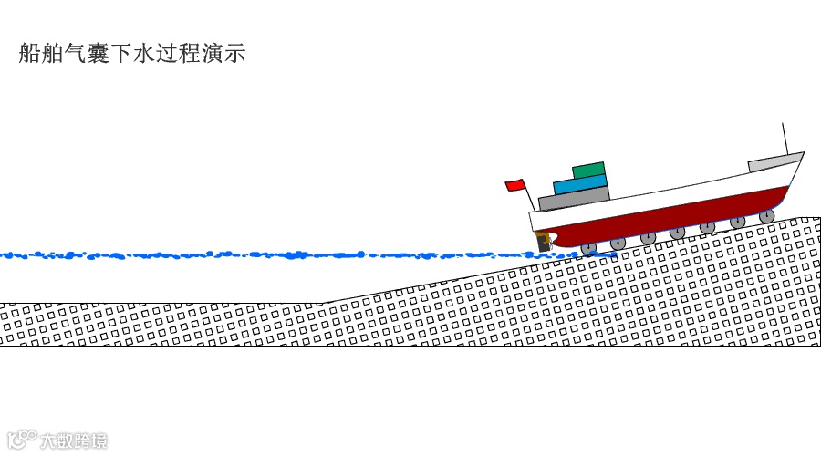 下水过程:船舶在重力或者绞车的作用下,随着滚动的气囊移向水中,完成起浮。