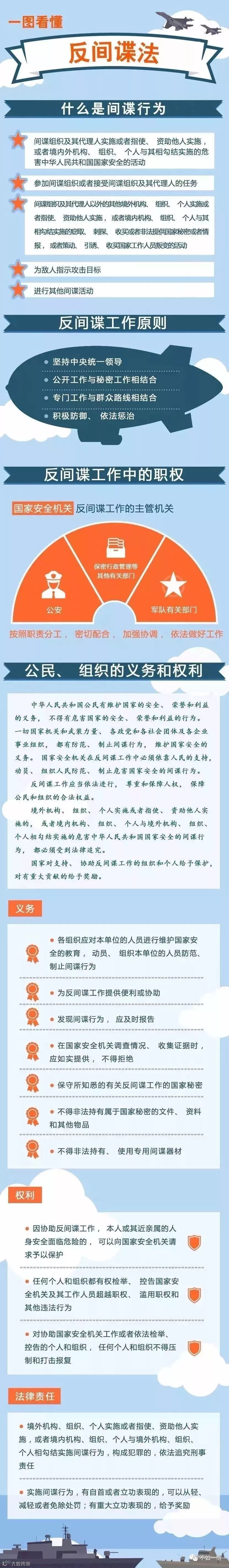 2019年11月1日,是《中华人民共和国反间谍法》(简称:反间谍法)颁布施行五周年,《反间谍法》既为反间谍工作提供了最基本的法律依据,又为在隐蔽战线贯彻落实总体国家安全观作出了具体的制度规划,进一步推进我国反间谍工作的规范化、制度化和法治化,为全面推进依法治国,发挥不可替代的重要作用。