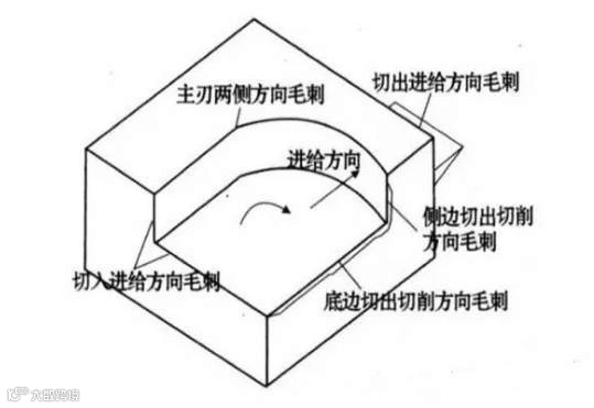 加工过程中进给方向毛刺(入口和出口毛刺)侧向和切割方向毛刺