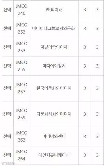 以高丽大学传媒学系为例,本科新生入学后选课制度为完全自由式选课,除三个基础必修科目之外。其它数百个囊括各个领域的传媒课程供学生有选择性地自由选择。