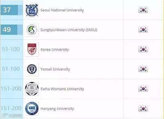 在“QS世界大学专业”排名中,韩国有四所大学的传媒专业进入前100名。其中首尔大学传媒专业以“世界第37名”的名次,位于韩国第一。