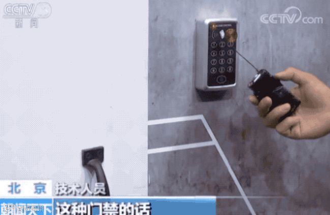 技术人员:这种门禁存在一定的安全缺陷。我们可以用这种设备,发射一个脉冲去干扰门禁开锁信息,进而实现开锁的目的。因此,我们一定要选用正规品牌厂商生产的安全机制较高的相关产品。