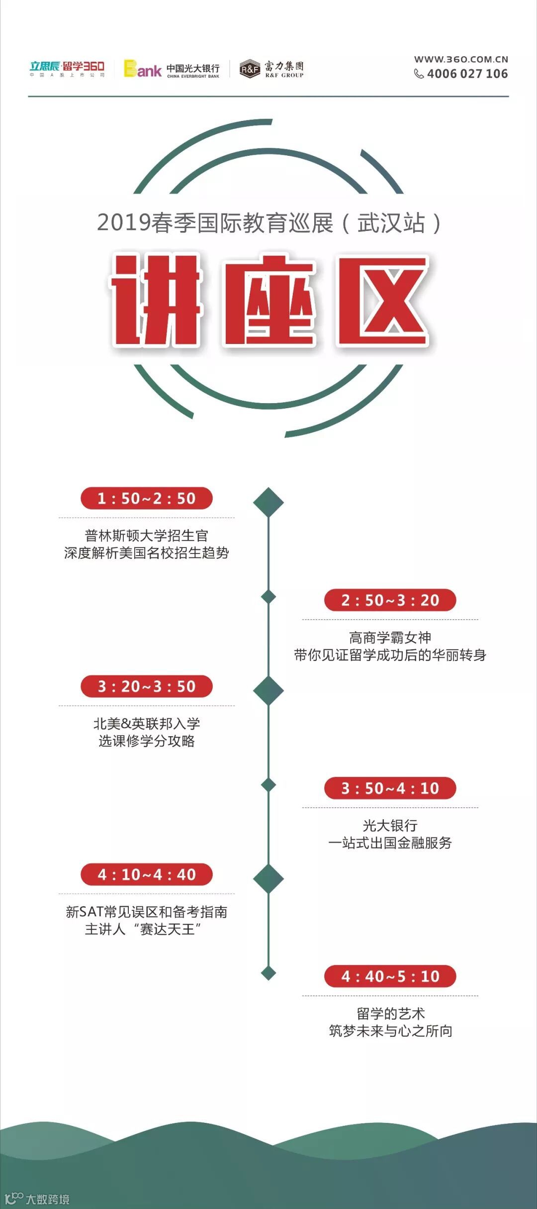 届时,将由美国常春藤大学联盟——US NEWS综合排名第一的普林斯顿大学领衔,数十所海外院校面试官将重装登陆武汉洪山宾馆,本次活动云集海外名校,全球TOP100白金规划师、海归学霸、金融高管、外籍口语考官组成专家团共同带来精彩纷呈的留学系列讲座和咨询。专家团队将结合当下最新留学趋势、留学方向、就业形势以及海外金融、地产投资服务等多个方面,解读最新政策信息,为湖北学子和家长及时把脉最新留学申请趋势,帮助学子从成功留学开始,逐步实现留学后的成功就业,真正实现了孩子留学、家长放心的一站式服务。教育展期间,现场签约还可直降中介费,另有机会抽取最新款华为Mate20手机、Mi小米平衡车、Iphone蓝牙耳机、kindle电子书等走心大礼。