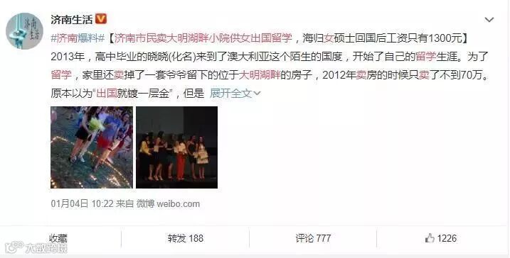最近,一篇《济南市民卖大明湖畔小院供女出国留学,回国却难工作》的报道引发舆论热议。