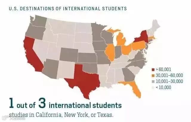 依据上图显示,中国留学生的学校主要集中在加州、纽约和德州。而其就业方向,则分布在美国东西海岸经济发达地区。