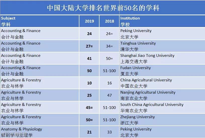 值得一提的是:中国农业大学的农林专业首次进入世界前10。