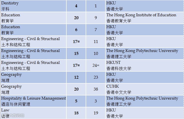 香港大学的牙科排名世界第4,其教育研究学排名从世界第7位上升至第6位。