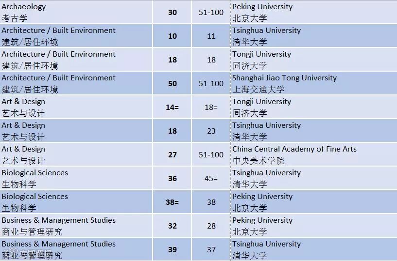 清华大学的建筑/建筑环境专业和北京大学的现代语言学系都排名世界前十位(全球排名第10名)。