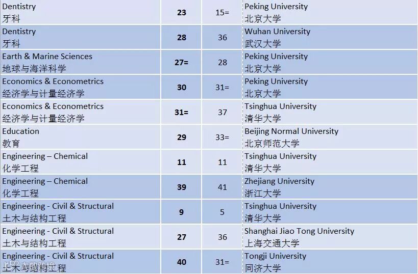 最新一期 QS 大学学科排名结果显示: