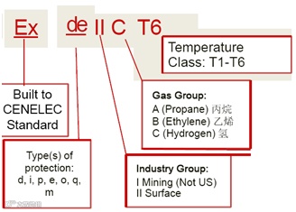 爆炸性气体环境用电气设备应符合IEC60079的要求。防爆等级表示如下: