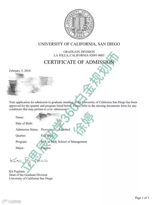 在明确学生留学目的和申请专业之后,指导学生进行专业实习的安排以及标化成绩的备考,进行个性化的软件背景提升和录取偏向性的了解,最终获得罗彻斯特大学,加州大学圣地亚哥分校金融专业的录取。