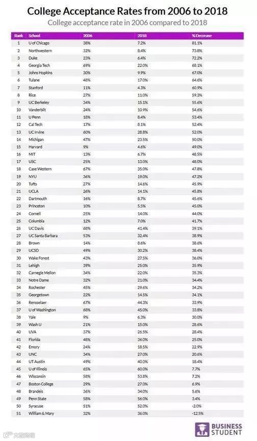 而12年前,2006年,University of Chicago(芝加哥大学)的录取率为38%!