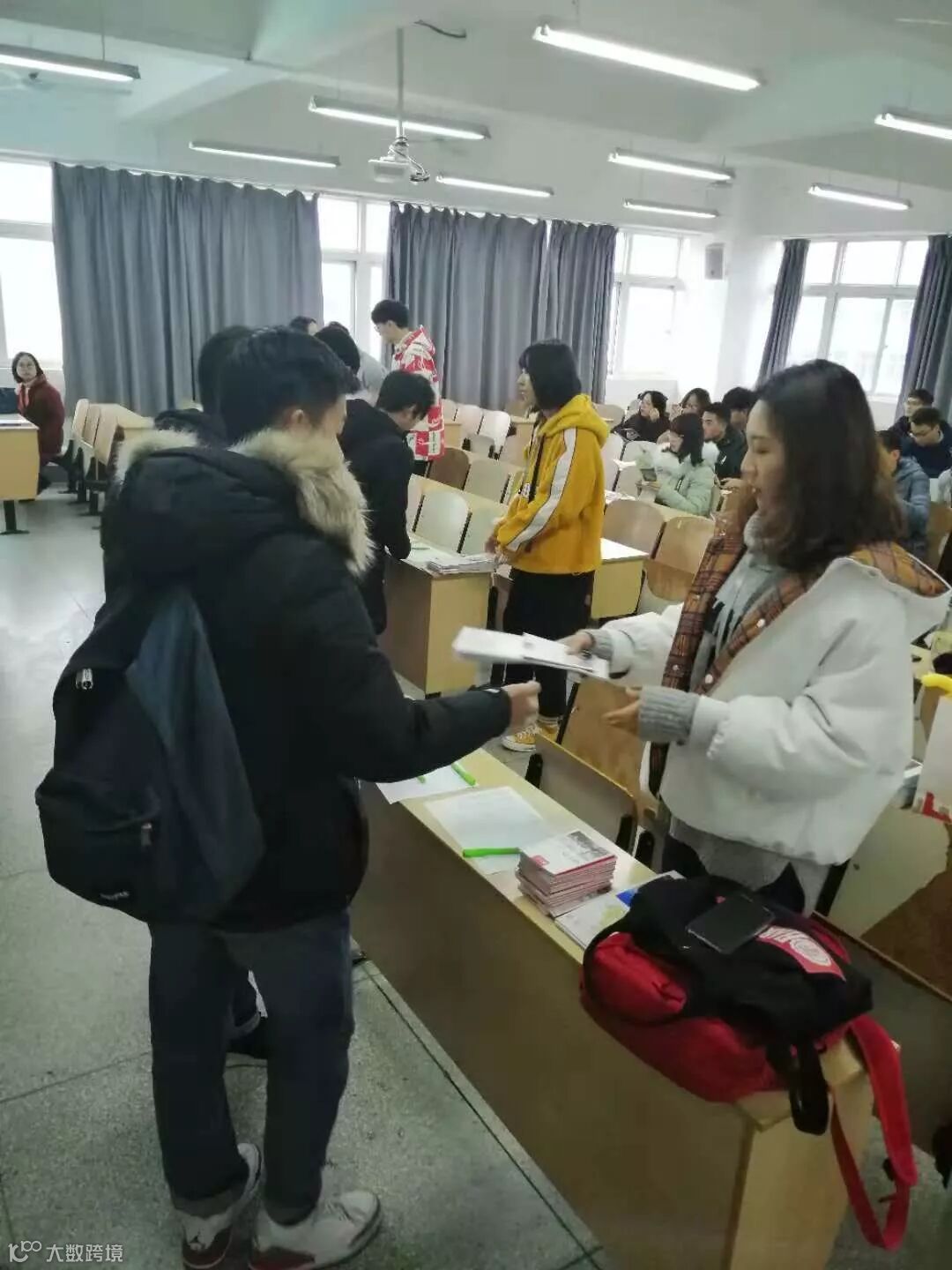 立思辰留学360的老师冒着寒风冷雨