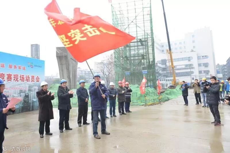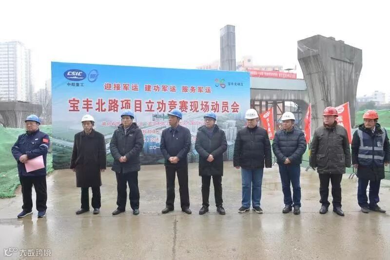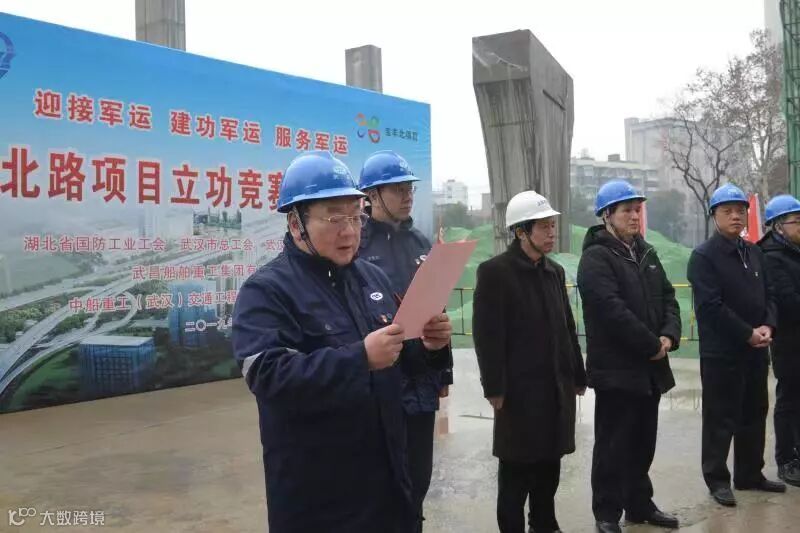 2月20日上午,在宝丰北路项目建设工地,湖北省国防工会、武汉市总工会、武汉市国防科研工会联合武船集团举行2019年第一场“迎接军运会 建功军运会 服务军运会”立功竞赛活动启动仪式。
