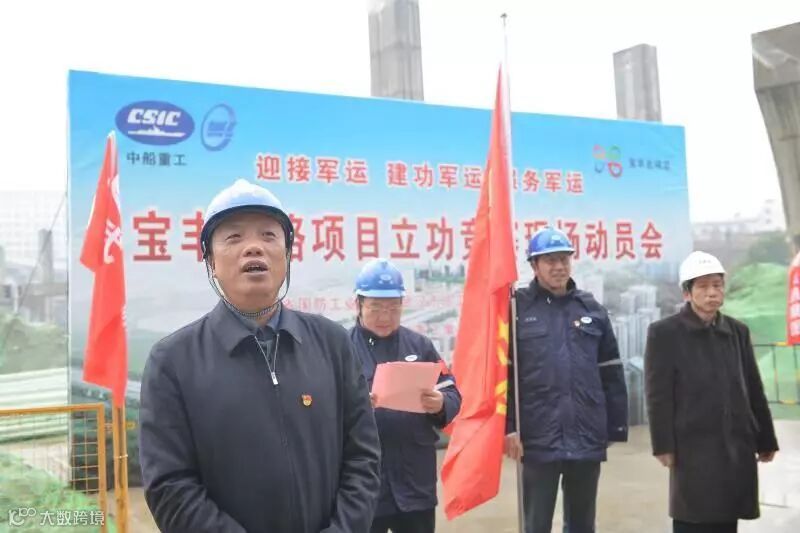 省国防工会主任袁善谋,武汉市总工会副主席李兵、武汉市国防科研工会主席王跃初,武船集团党委副书记、工会主席杨少稀出席启动仪式。李兵向武船宝丰北路项目公司授予了“攻坚突击队”旗帜。本次活动旨在以立功竞赛为载体,树立劳动竞赛典型,宣传军工企业文化,积极引导职工投身到“建功新时代”热潮中,加快推进宝丰北路项目建设,为武汉人民做贡献,为军运会的顺利召开提供可靠的保障。