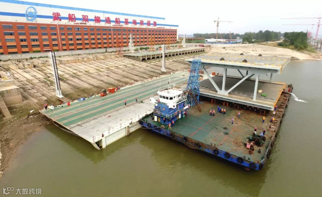 近日,由武船重工股份承建的杨泗港长江大桥主桥钢桁梁首节G24H分段成功装船,将发运至桥址进行吊装。