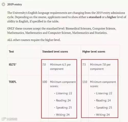 如果按照Higher level来审核的话,牛津大学以后的入学标准,将与剑桥大学语言成绩要求持平:
