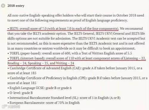 剑桥官网语言要求一栏明确写着,雅思总分7.5,单项不低于7.0,托福总分110,单项不低于25。